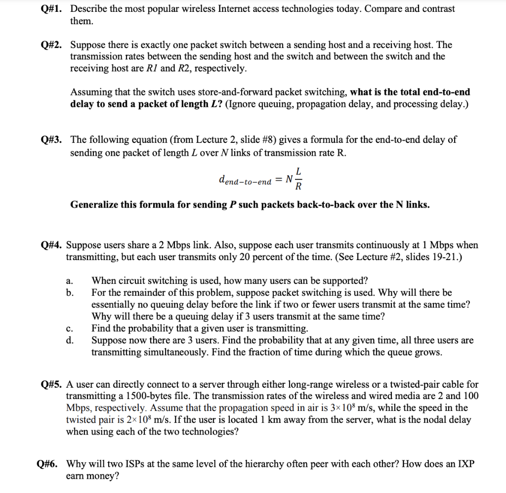 Solved Q 1 Describe The Most Popular Wireless Internet Chegg Com